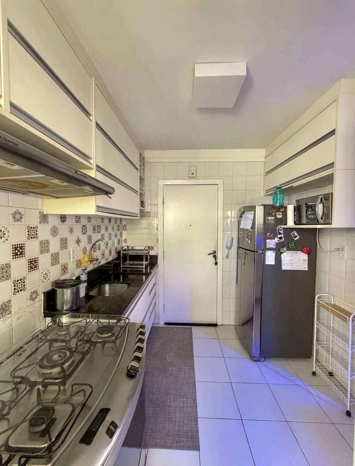 O imóvel conta ainda com dependência completa, totalizando 3 banheiros, e está localizado em andar baixo, com posição solar Sul, garantindo ambientes mais agradáveis e ventilados.