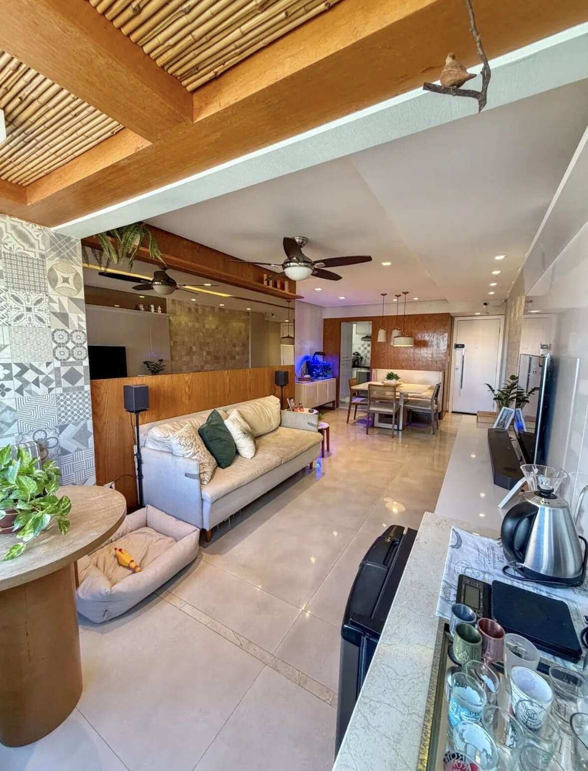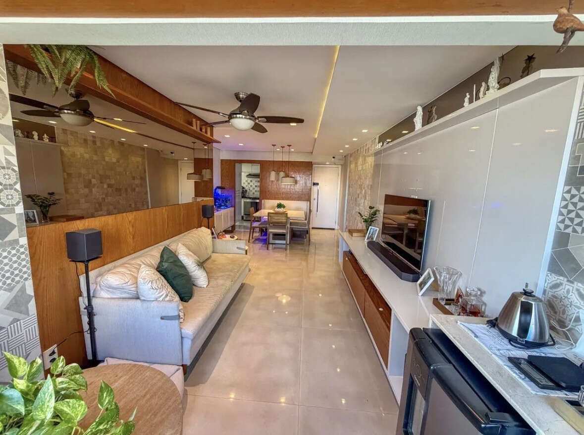 Com 98 m² de área útil, o apartamento possui uma planta bem distribuída, oferecendo 3 quartos, sendo 1 suíte, varanda, além de ambientes com móveis modulados que proporcionam mais praticidade e organização.