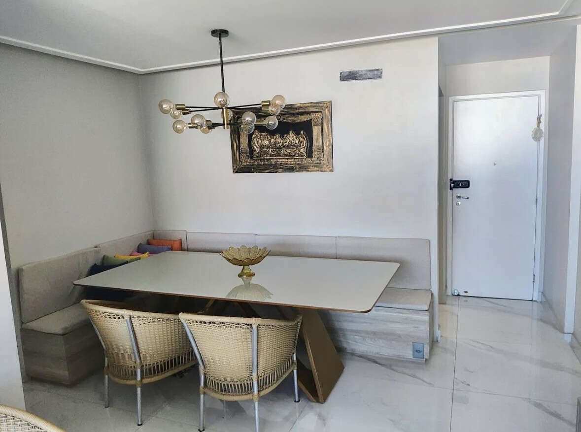 Com 84 m² de área útil, o apartamento foi reformado e possui uma planta funcional, com 3 quartos, sendo 1 suíte, varanda e ambientes com móveis modulados que garantem praticidade e organização no dia a dia.