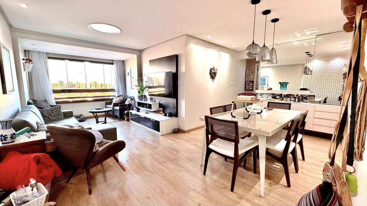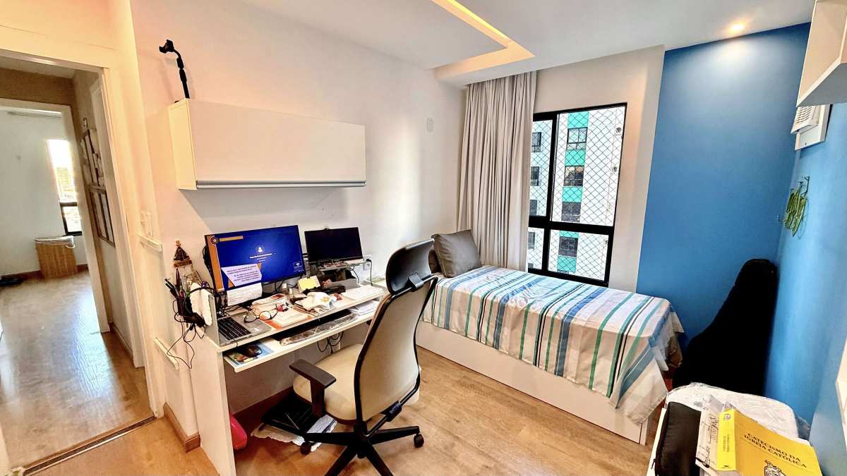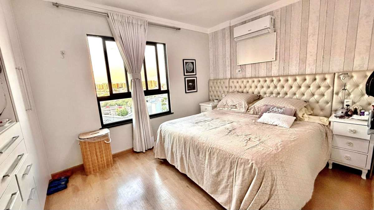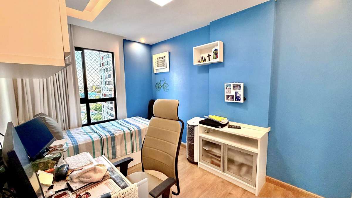 O apartamento possui 105 m² de área privativa, com uma planta bem distribuída que oferece conforto e funcionalidade. São 03 quartos, sendo 01 suíte, varanda com vista livre e privativa, sala de estar, sala de jantar, cozinha, banheiro social, área de serviço e dependência completa de empregada.