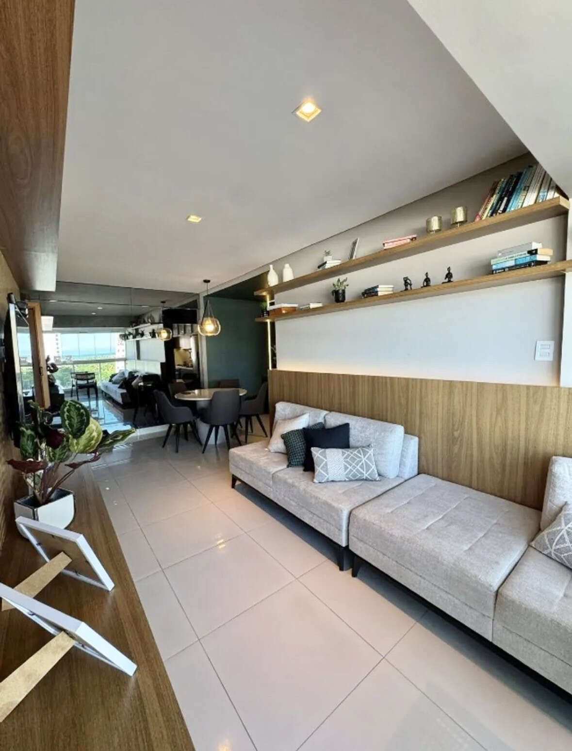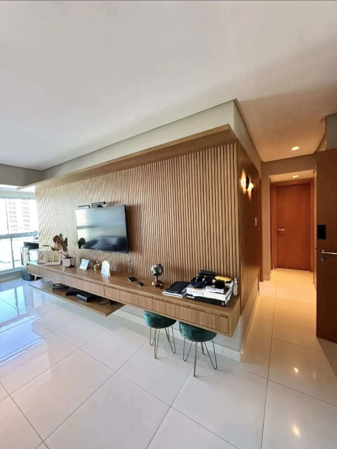 Com 75 m² de área privativa, o apartamento apresenta um projeto inteligente e funcional, dispondo atualmente de 2 quartos, sendo 1 suíte, ambientes bem planejados, com móveis modulados.
