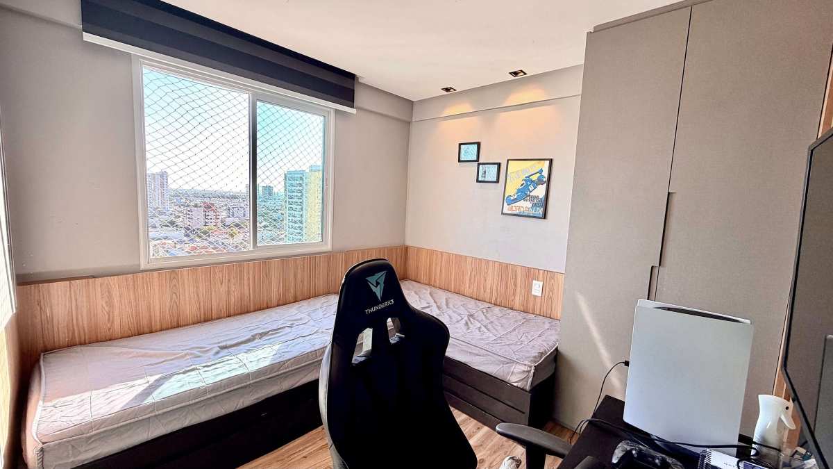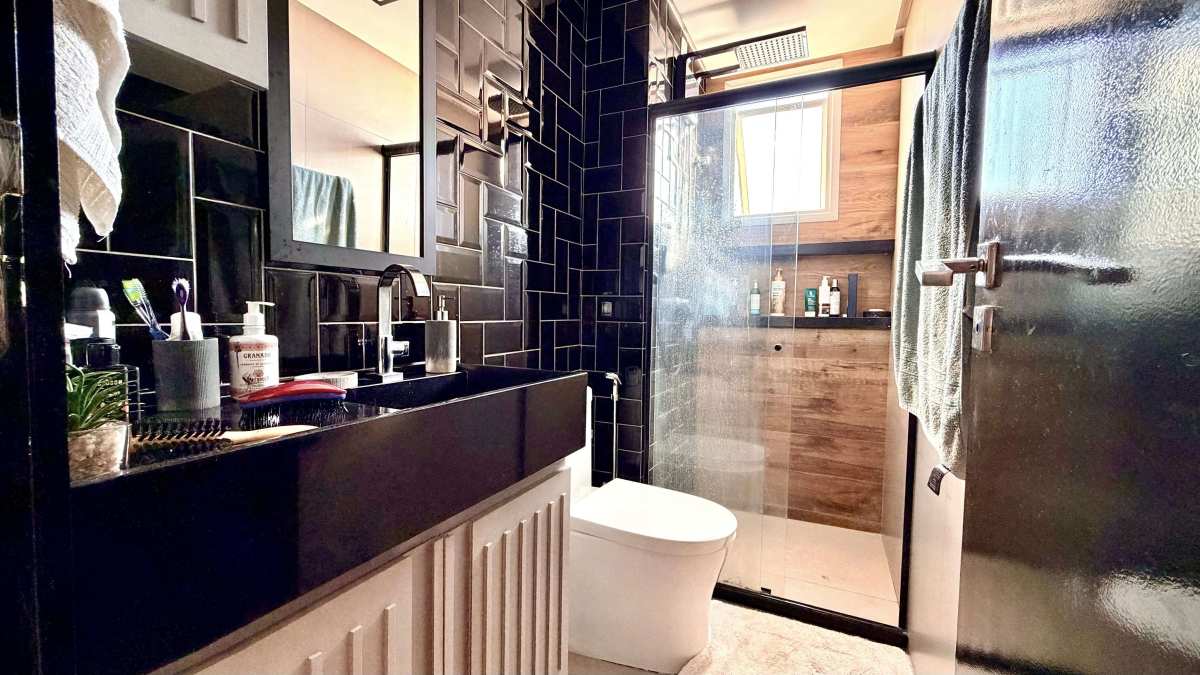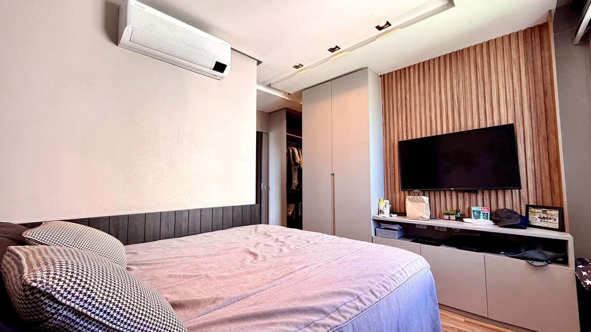 Na área íntima, são 02 suítes, incluindo suíte master com closet. O imóvel possui ar-condicionado central e acabamentos modernos que reforçam o conceito contemporâneo e sofisticado da proposta.