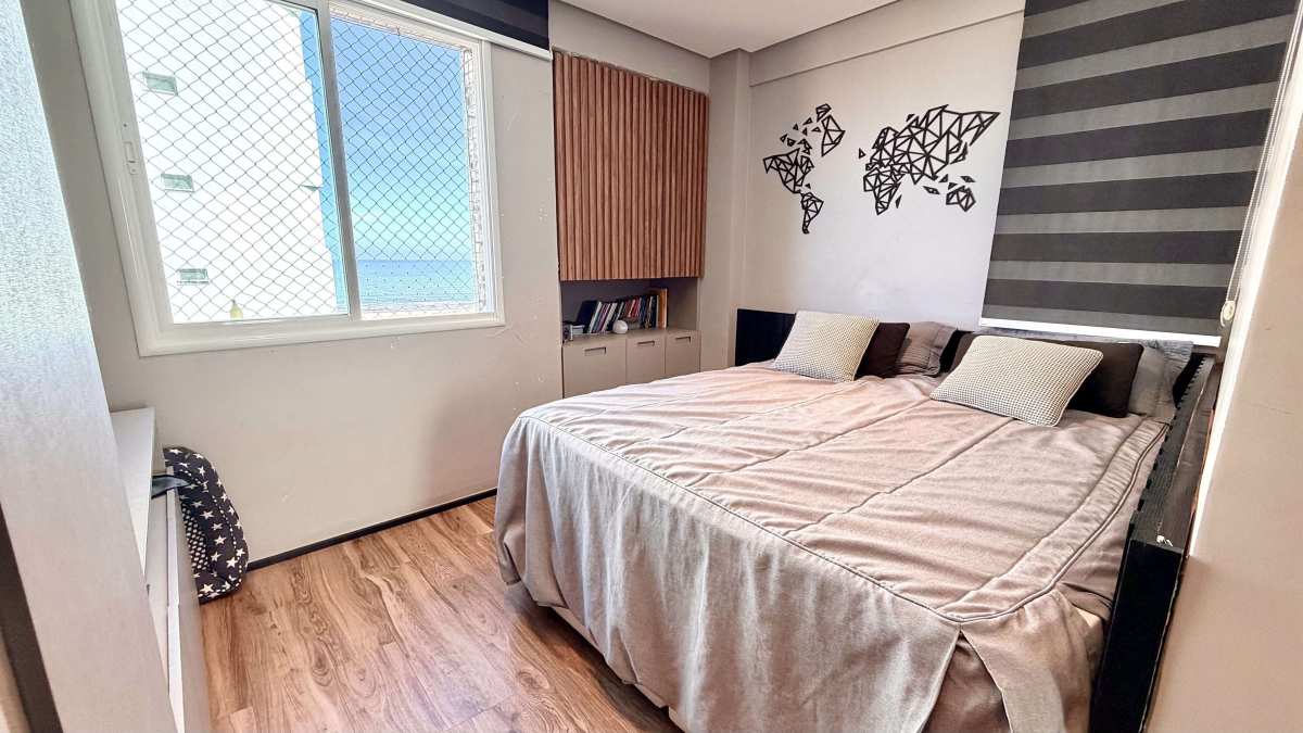 Apartamento com 110 m² muito bem distribuídos, em andar alto, posição Leste/Sul, garantindo excelente ventilação e conforto térmico. Frente mar, com vista privilegiada e permanente. Conta com 02 vagas de garagem e condomínio de padrão elevado.