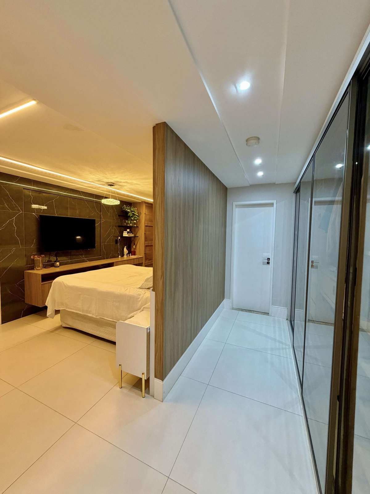 - 1 suíte ampliada**, resultado da integração de um dos quartos